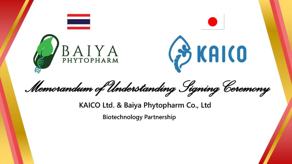 KAICO株式会社(本社:福岡県福岡市、代表取締役社長:大和 建太、以下「KAICO」)は、Baiya Phytopharm(本社:タイ王国・バンコク、CEO:Suthira Taychakhoonavudh、以下「Baiya」)と、タンパク質受託発現サービスの協業に向けたMOUを締結したことをお知らせいたします。